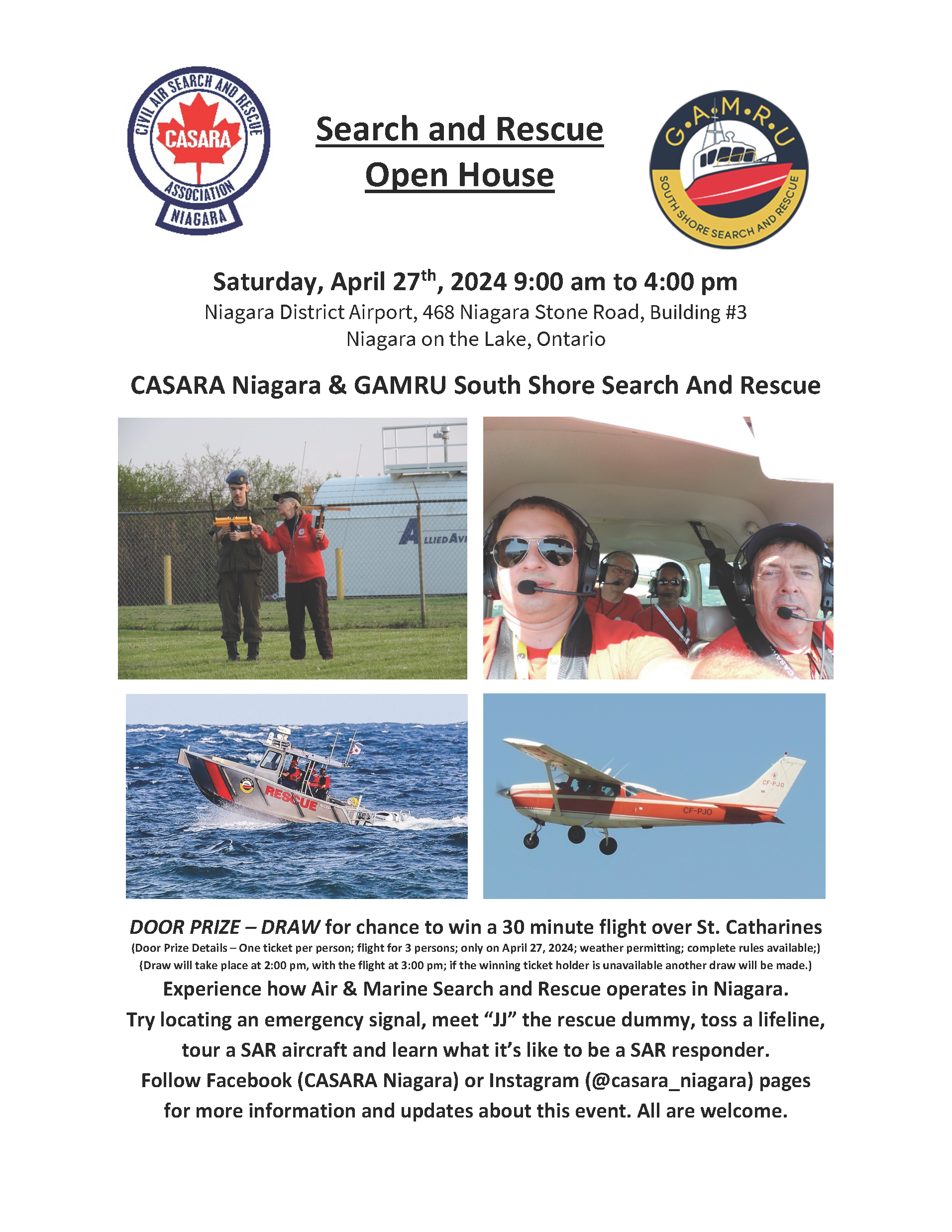 Civil Air Rescue Emergency Service (CARES Niagara) became operational in 1977. CARES Niagara was one of the founding members of the national Civil Air Search and Rescue Association (CASARA) in 1986. CARES Niagara, based at Niagara District Airport (CYSN), can perform both air and ground search operations across Ontario.